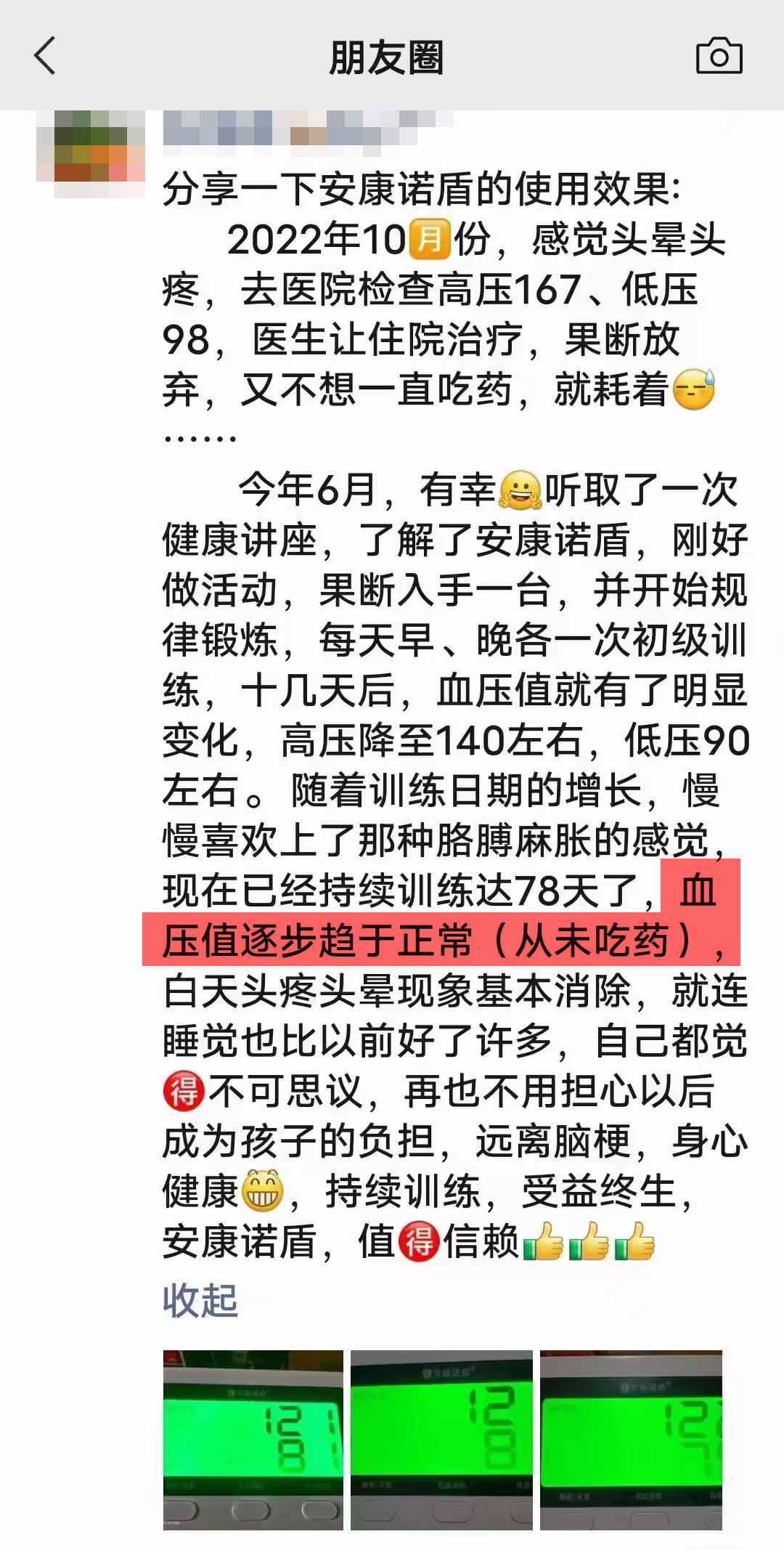 憑借其優(yōu)越的產(chǎn)品性能,卓越的使用效果,安康諾盾預(yù)適應(yīng)訓(xùn)練儀已經(jīng)成為了眾多心腦血管患者的福音,并且積累了良好的用戶口碑: